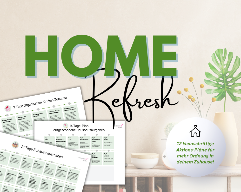 Du willst Ordnung schaffen, dich endlich wieder wohlfühlen in deinem Zuhause, aber dein Alltag ist schon voll genug? Dann brauchst du keine radikale Aufräumaktion, sondern einen machbaren Einstieg. Genau dafür ist Home Refresh gemacht.